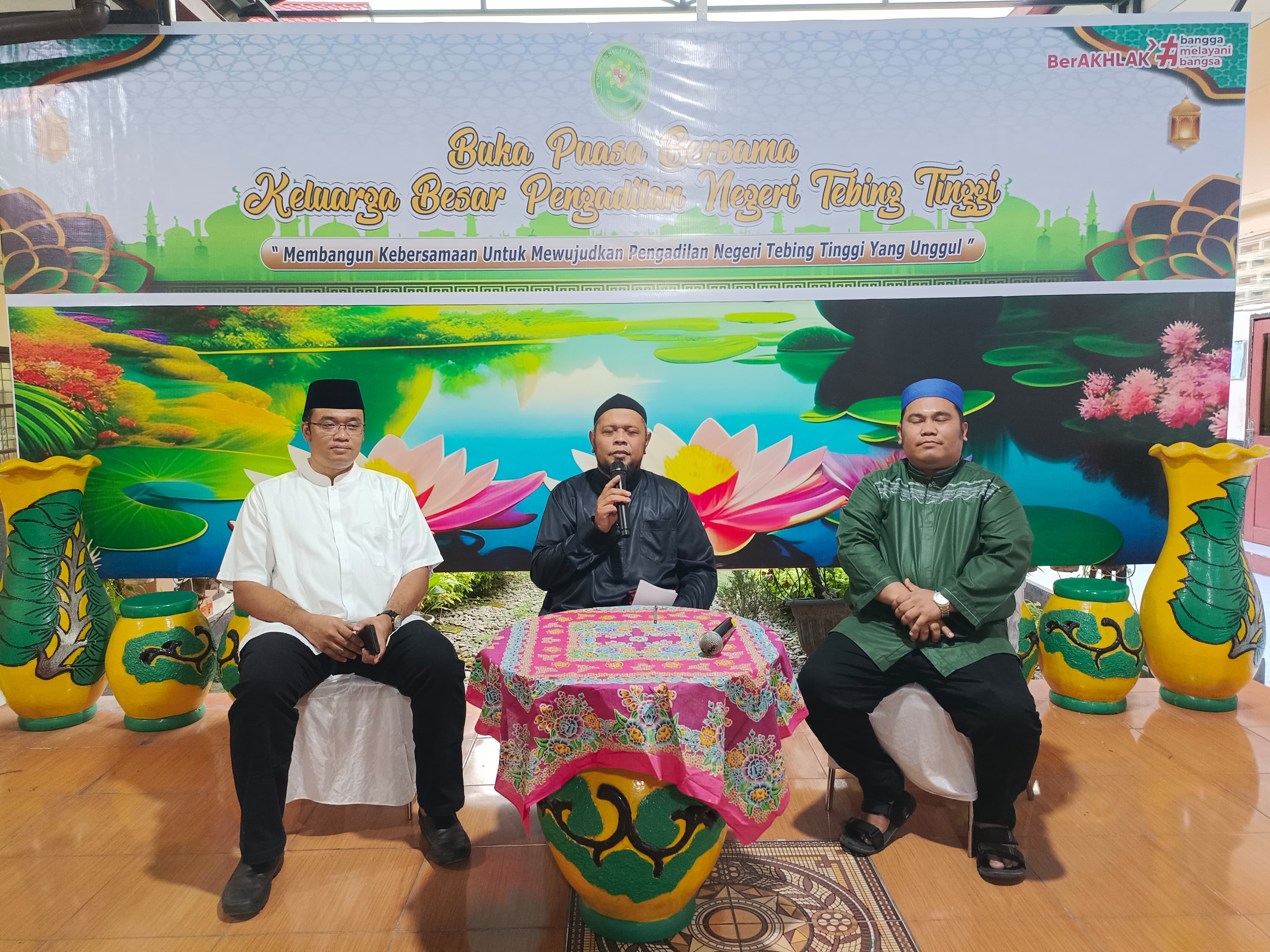 Setelah sambutan, acara berlanjut dengan ceramah agama yang disampaikan oleh Ustaz Yusnul Adhary, S.E., beliau merupakan ketua Dewan Masjid Kota Tebing Tinggi. Dalam ceramahnya, Ustaz Yusnul mengajak seluruh peserta untuk menjadikan Ramadan sebagai momentum introspeksi diri, meningkatkan kepedulian sosial, dan memperkuat nilai-nilai keadilan serta kejujuran dalam kehidupan sehari-hari.