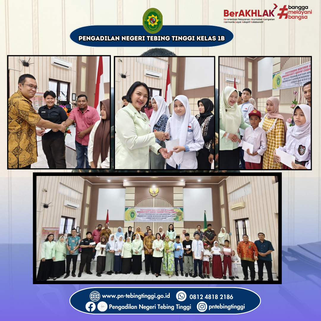 Turut hadir dalam kegiatan tersebut Pelindung Dharmayukti Karini Cabang Tebing Tinggi, Bapak Hajar Widianto, S.H., M.H., yang juga menjabat sebagai Ketua Pengadilan Negeri Tebing Tinggi. Dalam sambutannya, beliau memberikan apresiasi atas terselenggaranya program ini serta mengharapkan agar bantuan yang diberikan dapat memotivasi anak-anak untuk terus berprestasi dan menjadi generasi penerus bangsa yang membanggakan.